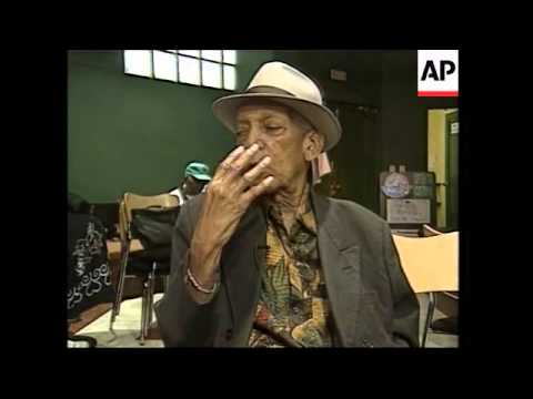 Funeral of Buena Vista Social Club's Compay Segundo - Compay Segundo Biography - 1. Various of people entering Municipal Headquarters of Cuba for wake 2. Crowds waiting outside to pay their respects 3. Memorial of guitar and hat 4. People ...