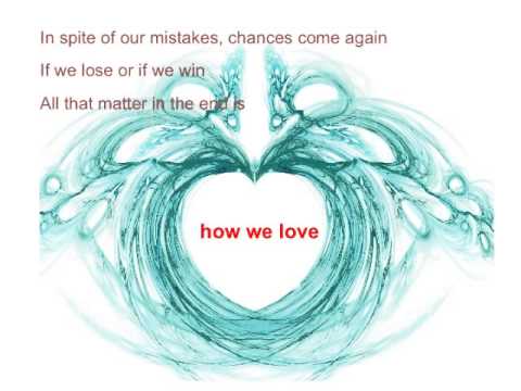 All that matters is how we love! - Beth Nielsen Chapman How We Love - Love this song (How We Love) and found some great art and photos to make the (very important) point about love. Lyrics: Life has taught me this Every day is ...